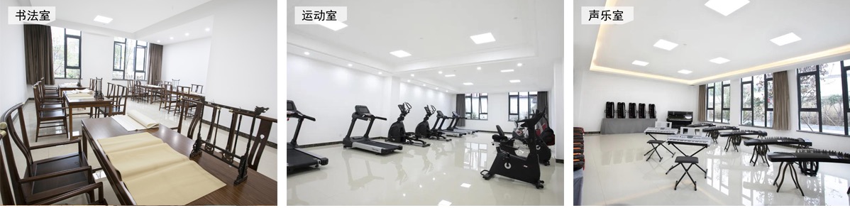 活动中心设有棋牌室、图书室、阅览室、舞蹈室、兵乓球室、书画活动室、健身房、功法道场、乐器室、影院、KTV等20多种娱乐设施及场地。有专业高素质的养生保健团队,每天有不同的娱乐项目,如养生讲座、技能竞赛,户外采摘等,让长者的生活增添色彩和乐趣。